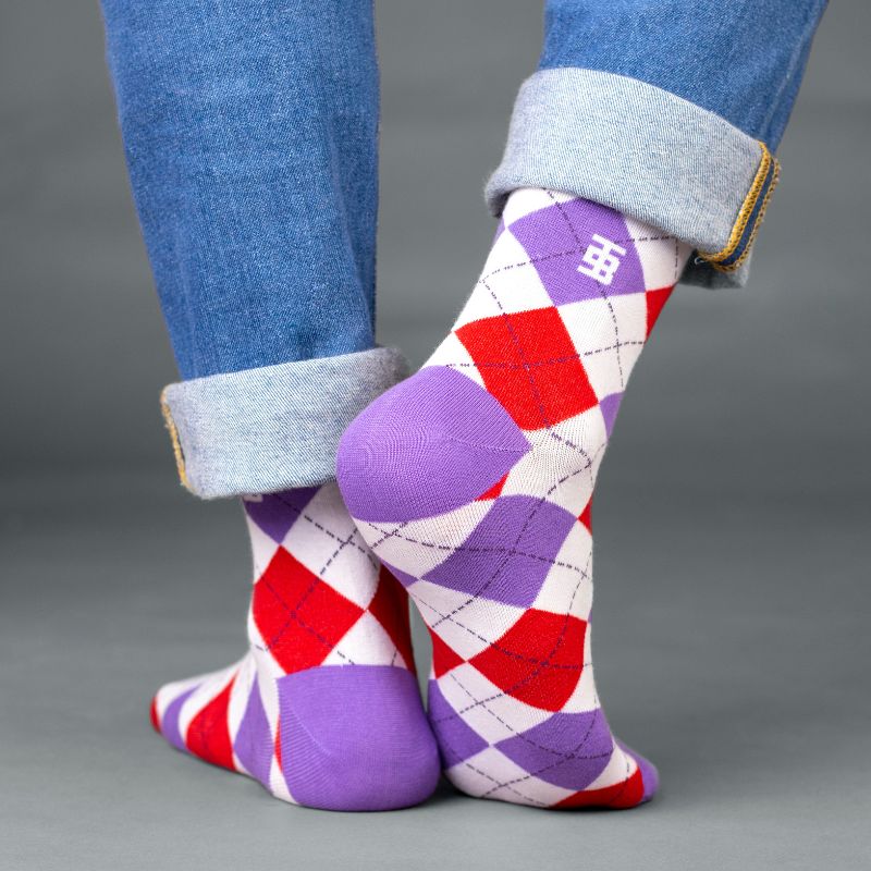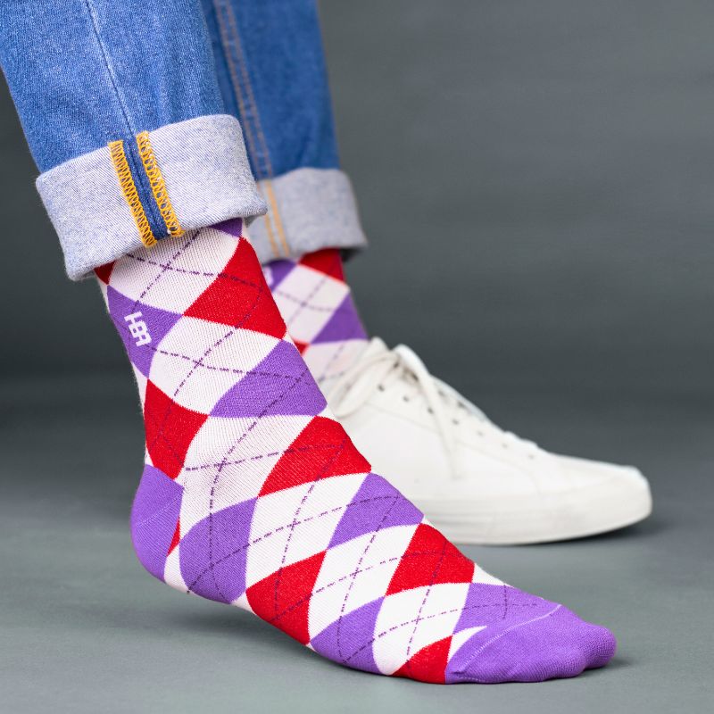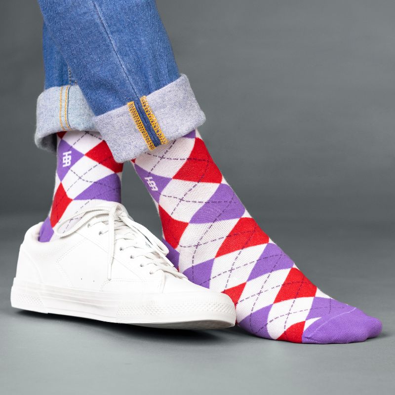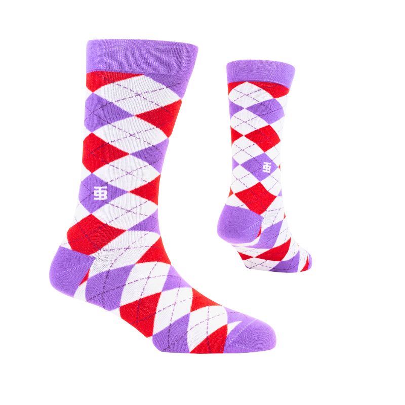 With their captivating purple, white, and red color pattern, these socks add a touch of sophistication to your wardrobe. Whether you need a formal or casual look, SockSoho's Berry Argyle Edition has you covered.