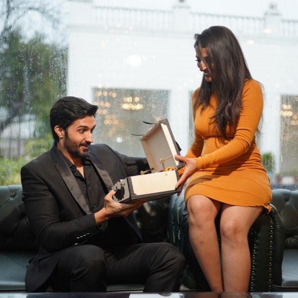 This gift box has 15 pairs of designer socks that come in our signature wooden box