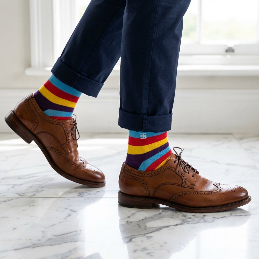 The breathtakingly beautiful Ashikaga Park in Japan has inspired this Ashikaga edition. The socks feature stripes of elegant shades of purple, yellow, red, and blue; taking a cue from the enigmatic landscape in Ashikaga. Wear the Ashikaga Edition and let your blooming personality do the talking.