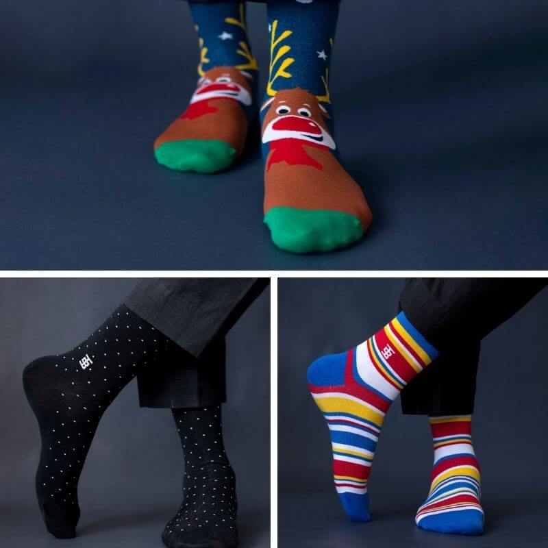 Presenting Power Collection for the ambitious men of the 21st century. This gift box comes with 7 pairs of designer socks in our signature black gift box. It features 3 iconic editions - Steve Jobs, Vikings, and Reindeer; two Luxury Editions - Classic Black and Regal Edition accompanied by 2 rich stripes. It also makes for a perfect and unique gift for men.