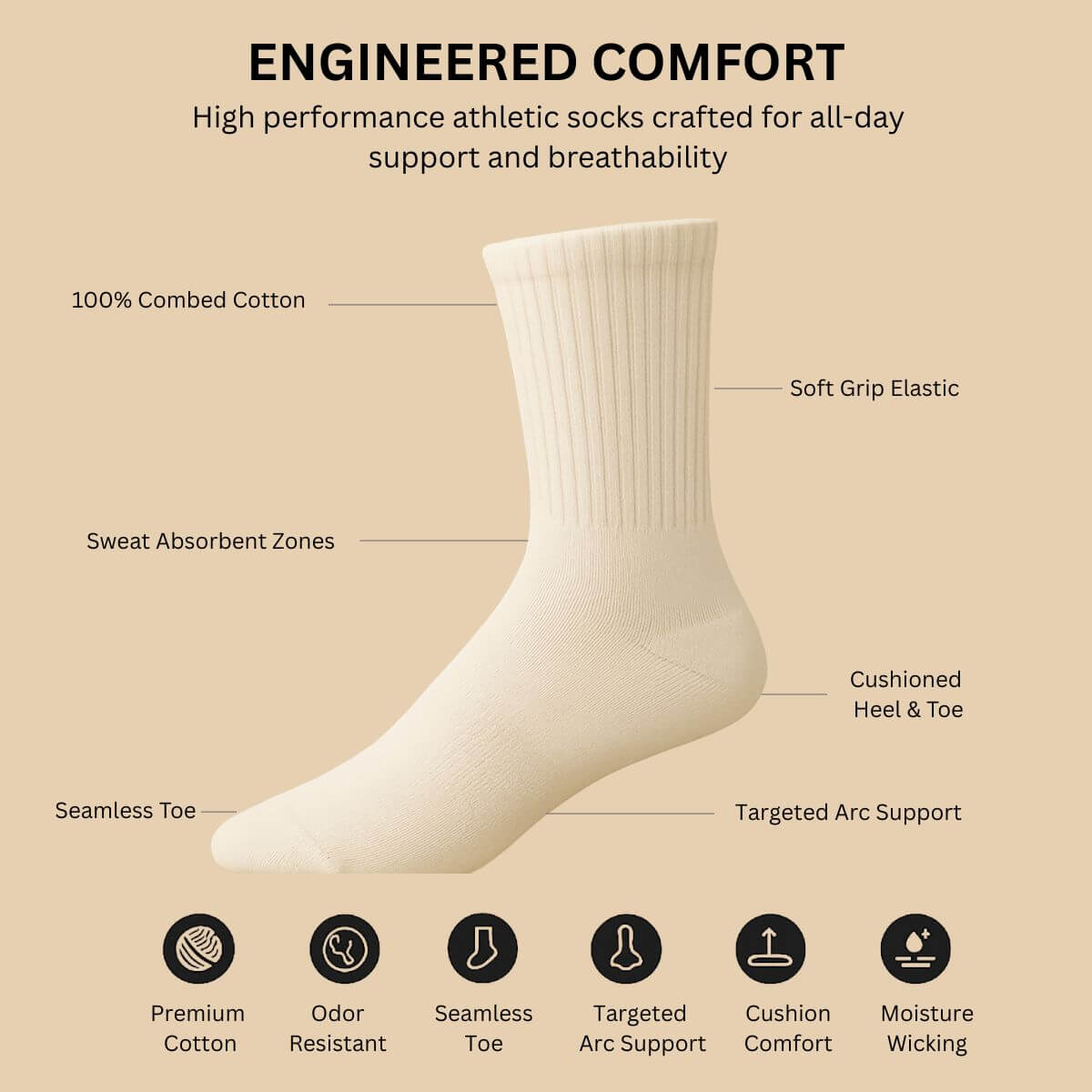 - Moisture-wicking and odor-resistant yarn to keep your feet fresh all day.